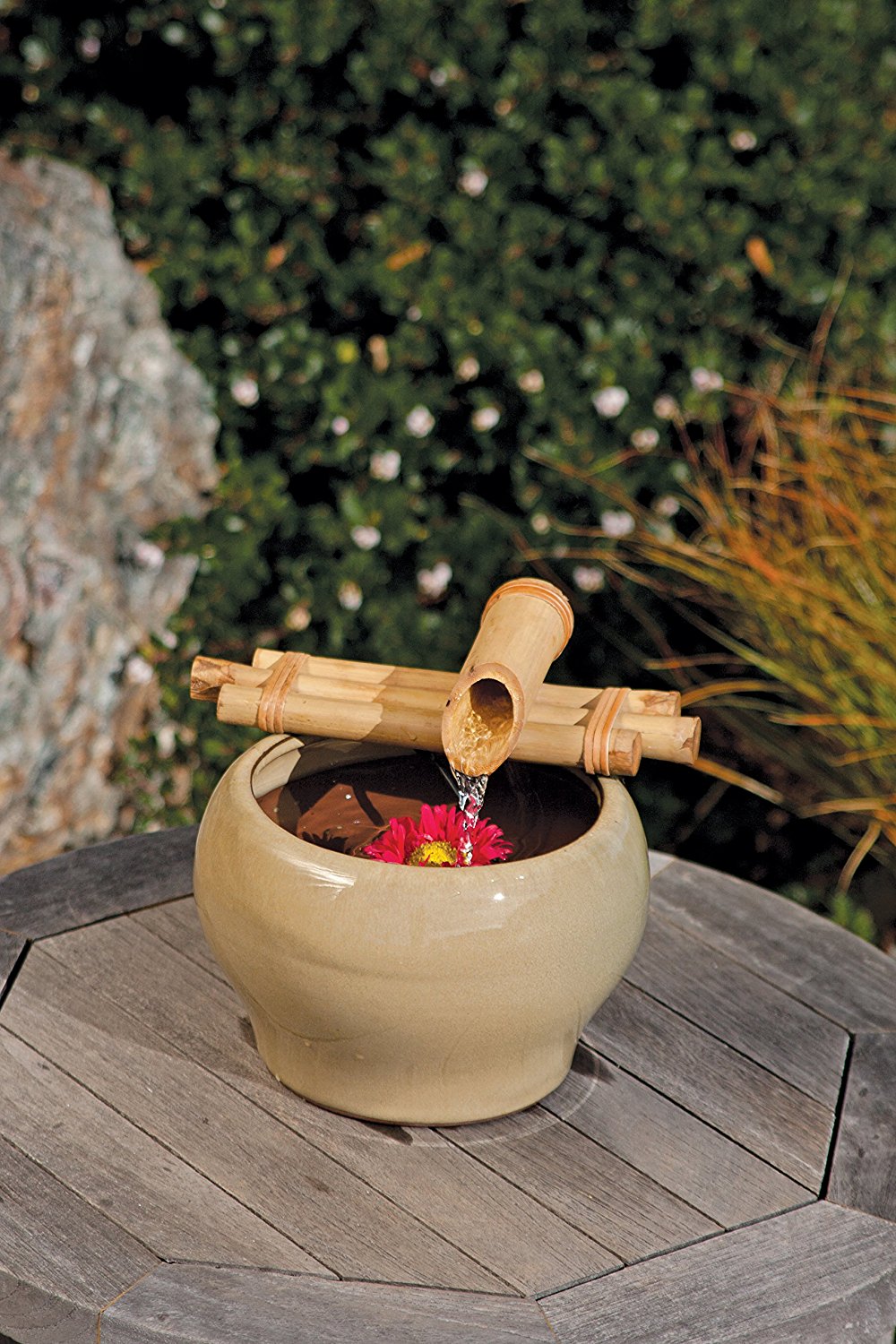 - EASY INSTALL: Complete kit includes submersible pump, tubing and bamboo fountain. Start hearing the calming sound of running water in just minutes. This size fits on the edge of a 6" to 15" diameter container.